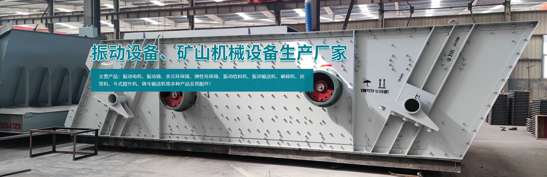 • 主要產(chǎn)品有系列振動電機、振動篩、多元環(huán)保篩、彈性環(huán)保篩、振動給料機、振動輸送機、破碎機、皮帶機、斗式提升機、鏈斗輸送機等多種產(chǎn)品